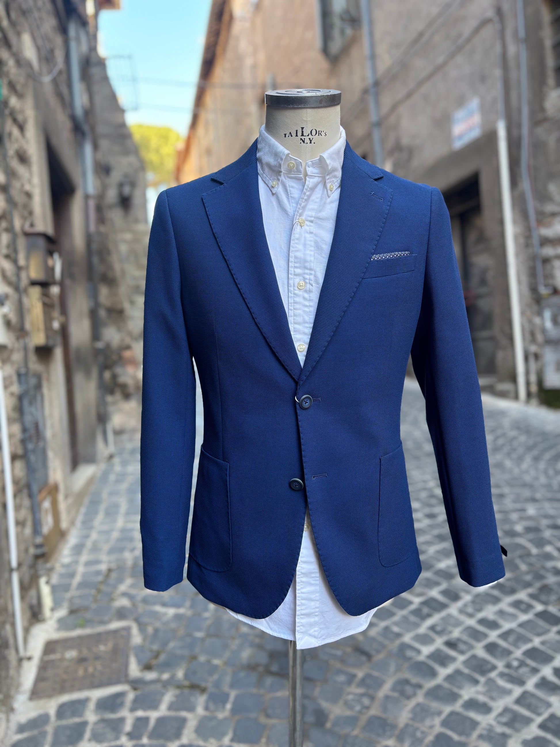 Giacca di VeLo Roma in tessuto dalla trama armaturata, colore blu avio.